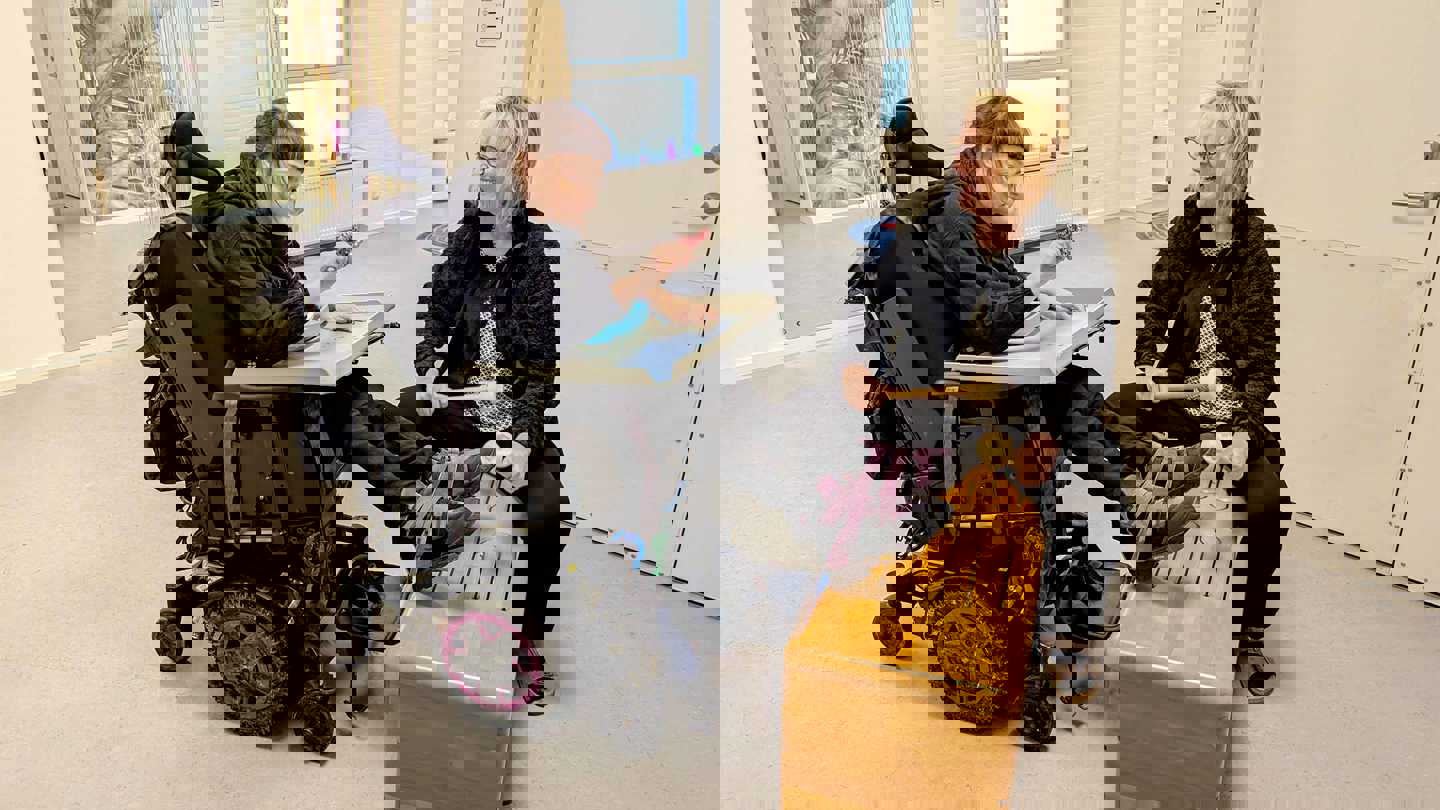 På den ene væg hænger et spejl, hvor du kan fordybe dig i dit spejlbillede, mens du kan røre ved en farvet fiberoptik.